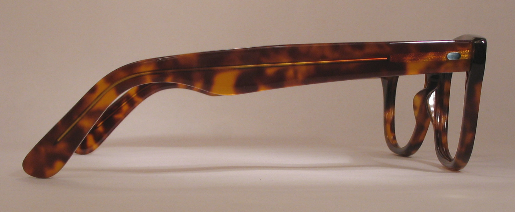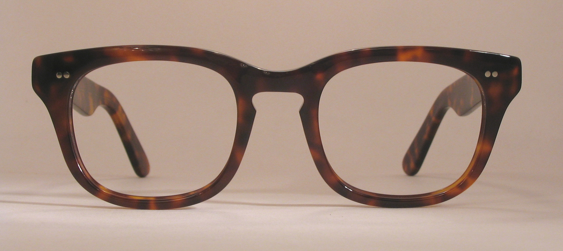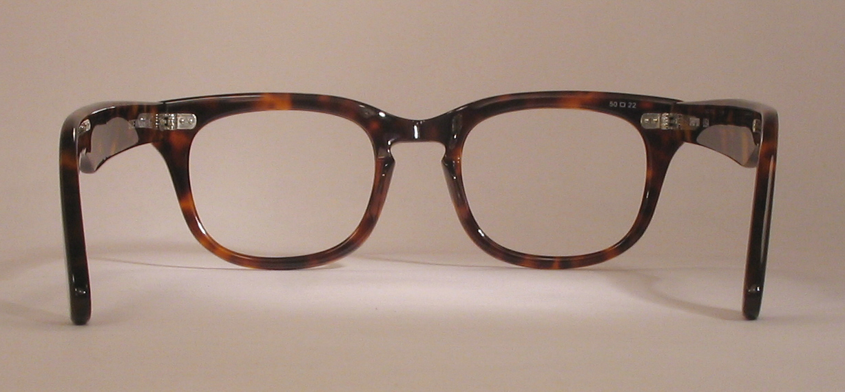 strong five-barrel hinges and a great zyl. Broad temples, keyhole bridge, and silver, double-dot hinge rivets.