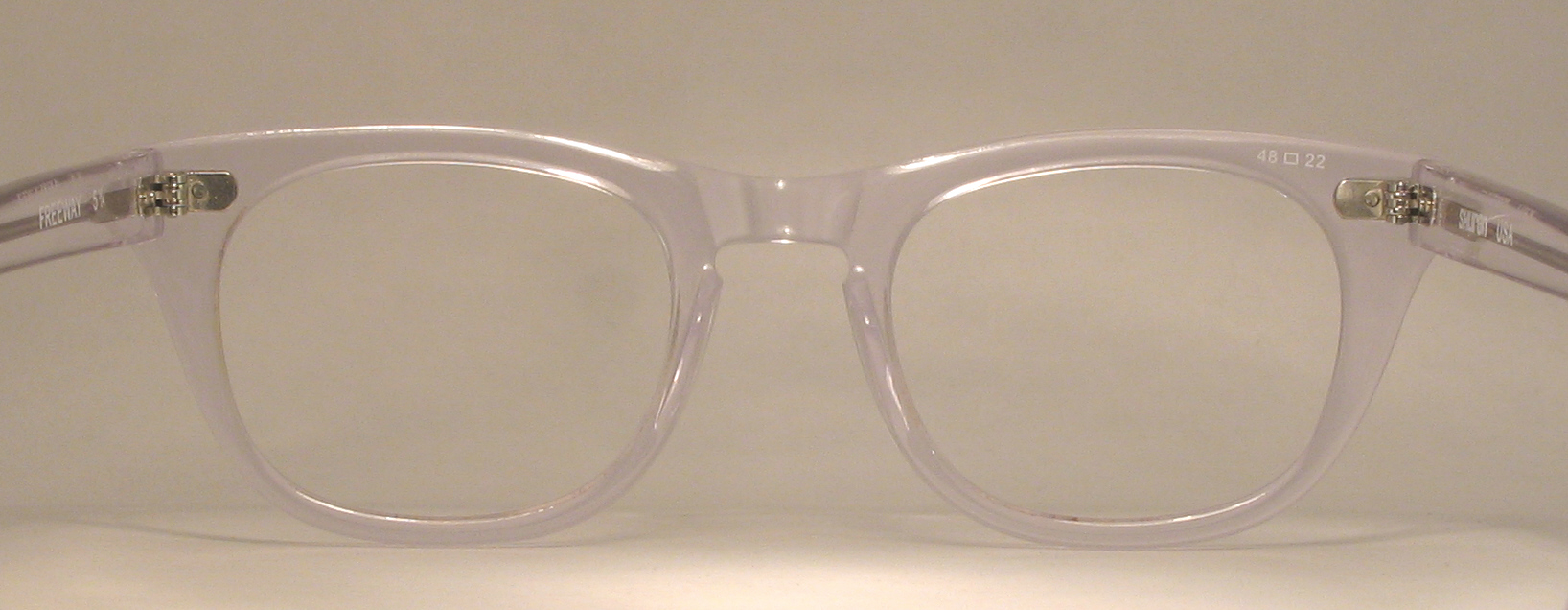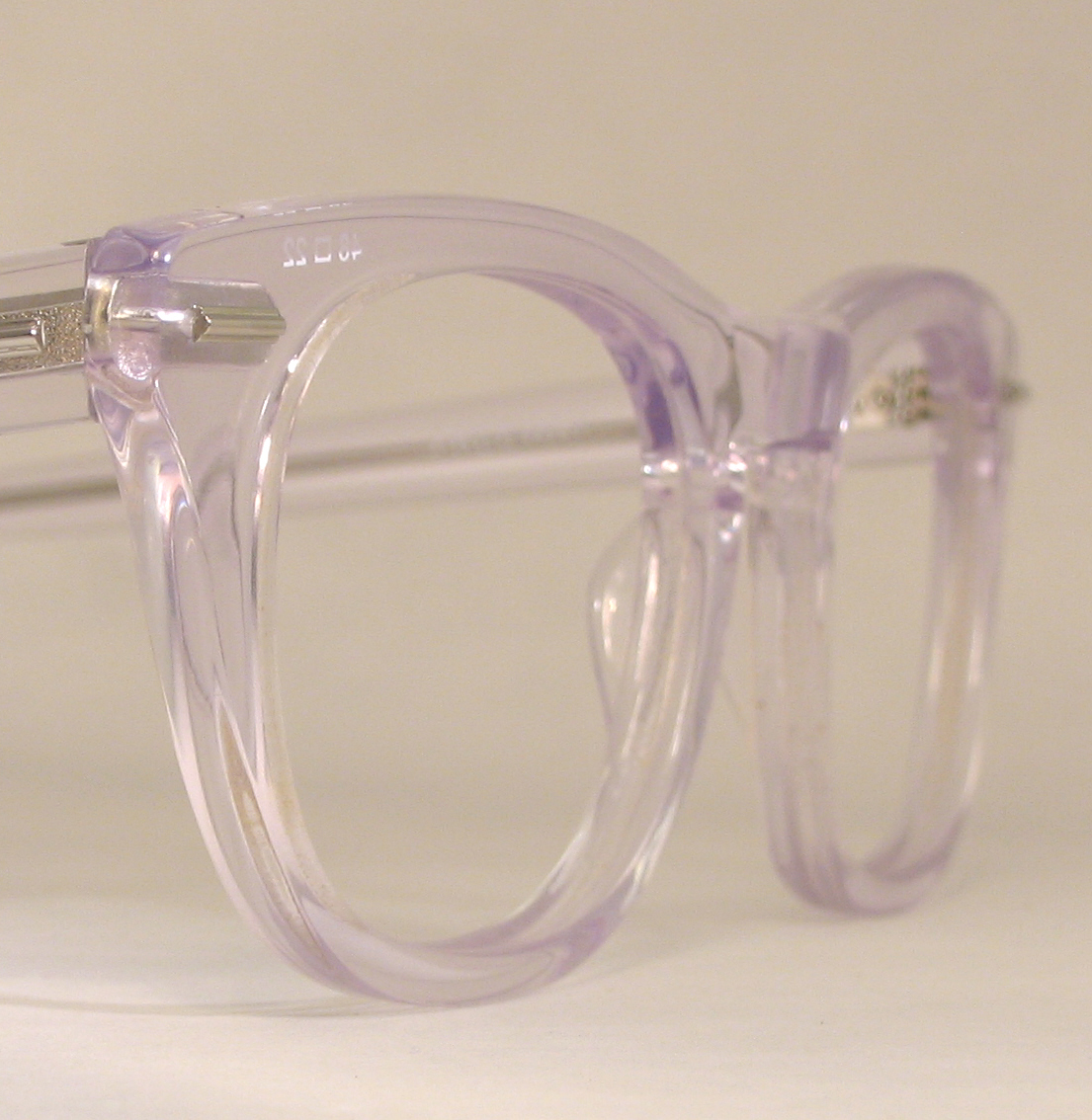 the temples are marked ''SHURON USA 5 3/4''. The plastic has a nice sheen and the metal