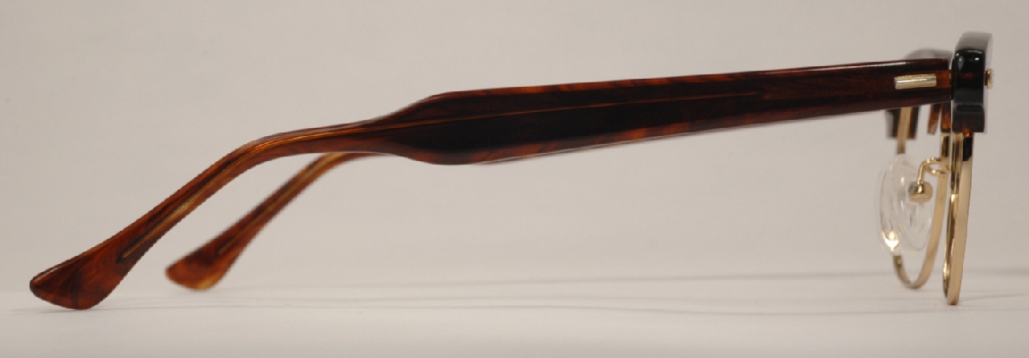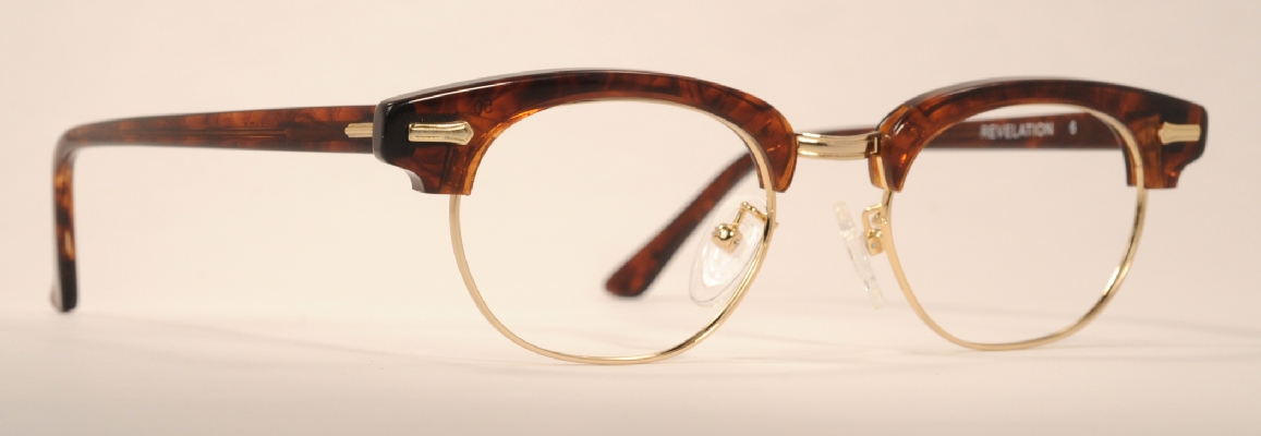 tortoise over gold, a great combination. The Revelation is a new style from Shuron in the last couple years, a slight modification of their classic Ronsir frames. The tops and temples are the same as a Ronsir, but the chassis, the