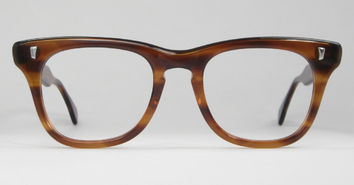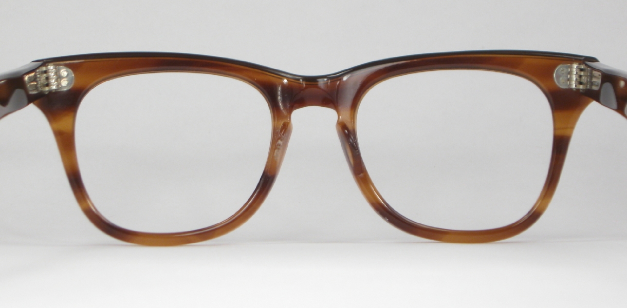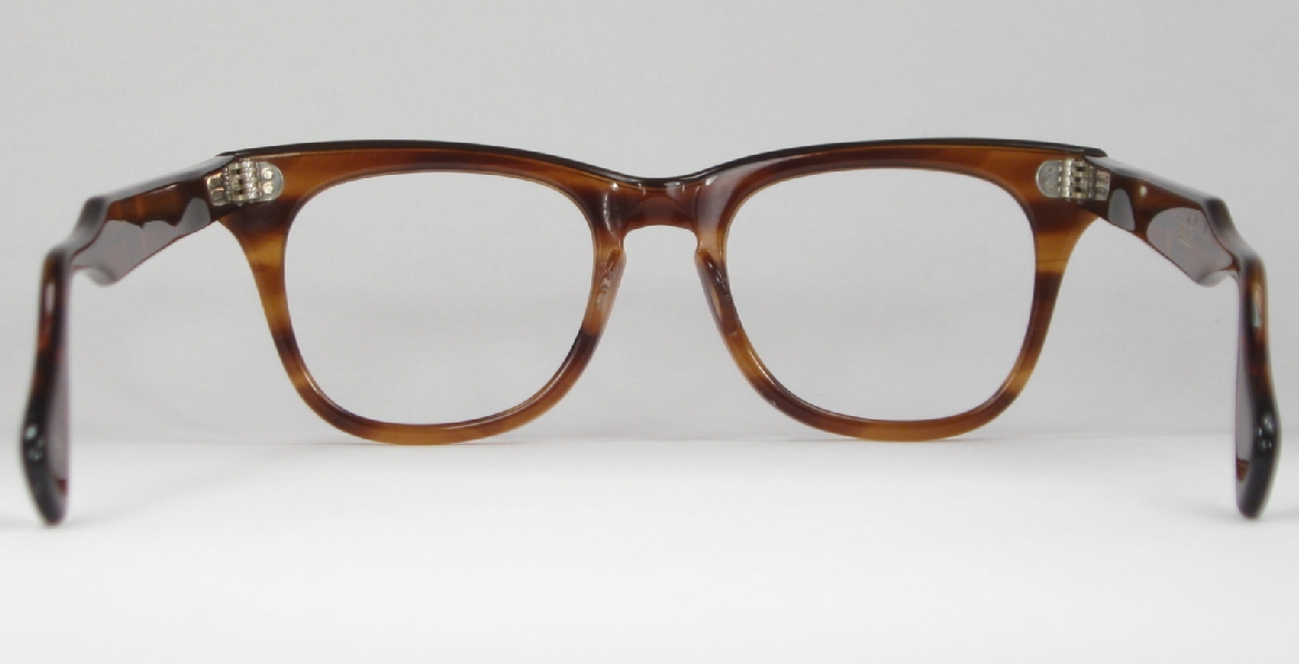 | These classic men's tortoise plastic vintage eyeglasses are in mint condition and ready for prescription lenses or sunglasses. The bridge is marked ''MARINE 51-19'' and the arms read ''MARINE U.S.A. 6''. The plastic has a nice sheen with no cracks, crazing or discoloration and the rivets shine bright.  |