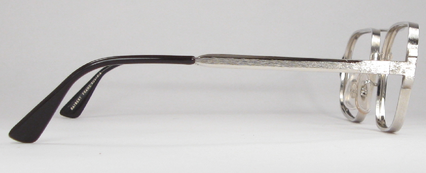 vintage silver Raybert Signabar metal frames are in mint condition and ready for prescription lenses or sunglasses. The bridge is marked ''54/22'' and the arms read ''RAYBERT FRAME AUSTRIA''.  |