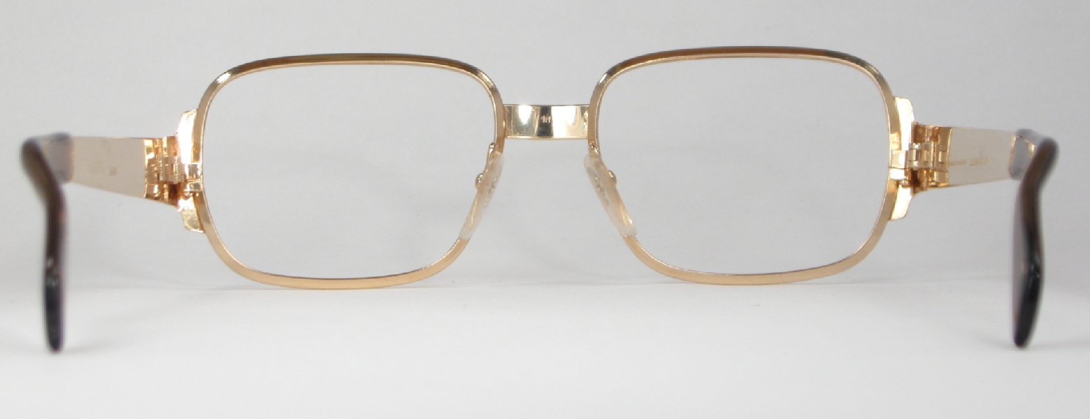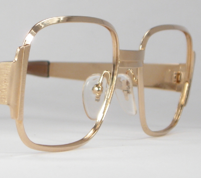| These classic gold vintage metal eyeglasses are in mint condition and ready for prescription lenses or sunglasses. The bridge is marked ''18'', the frame is marked ''54'' and the arms read ''optura JOHN 135 FRAME W.GERMANY 20/000 12 ct. GF''. The markings mean the frame is 12 karat gold-filled.  |