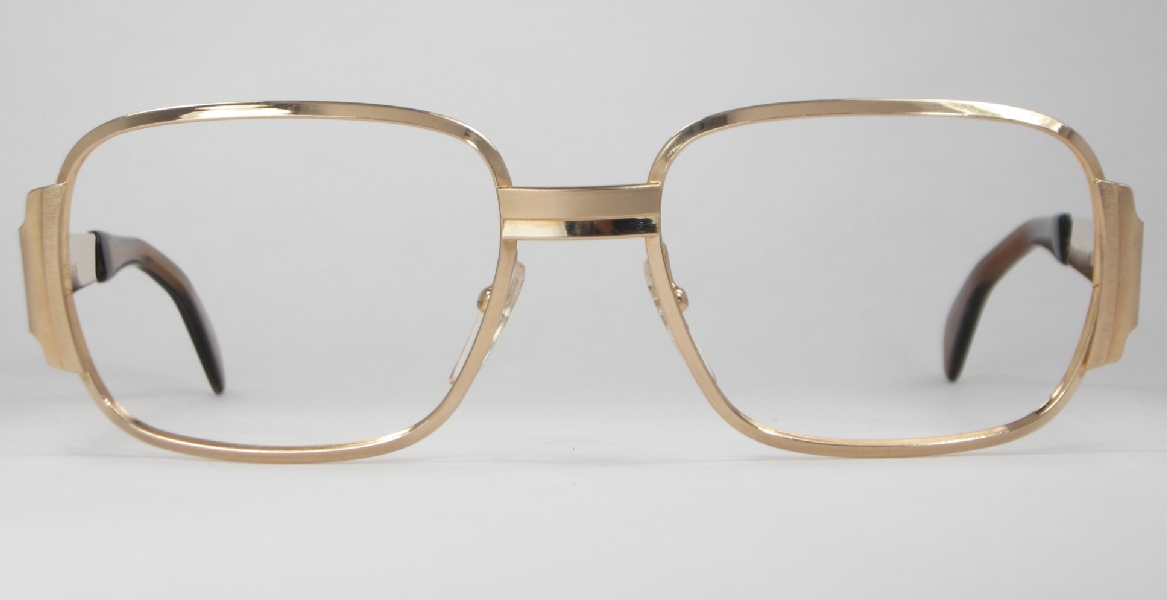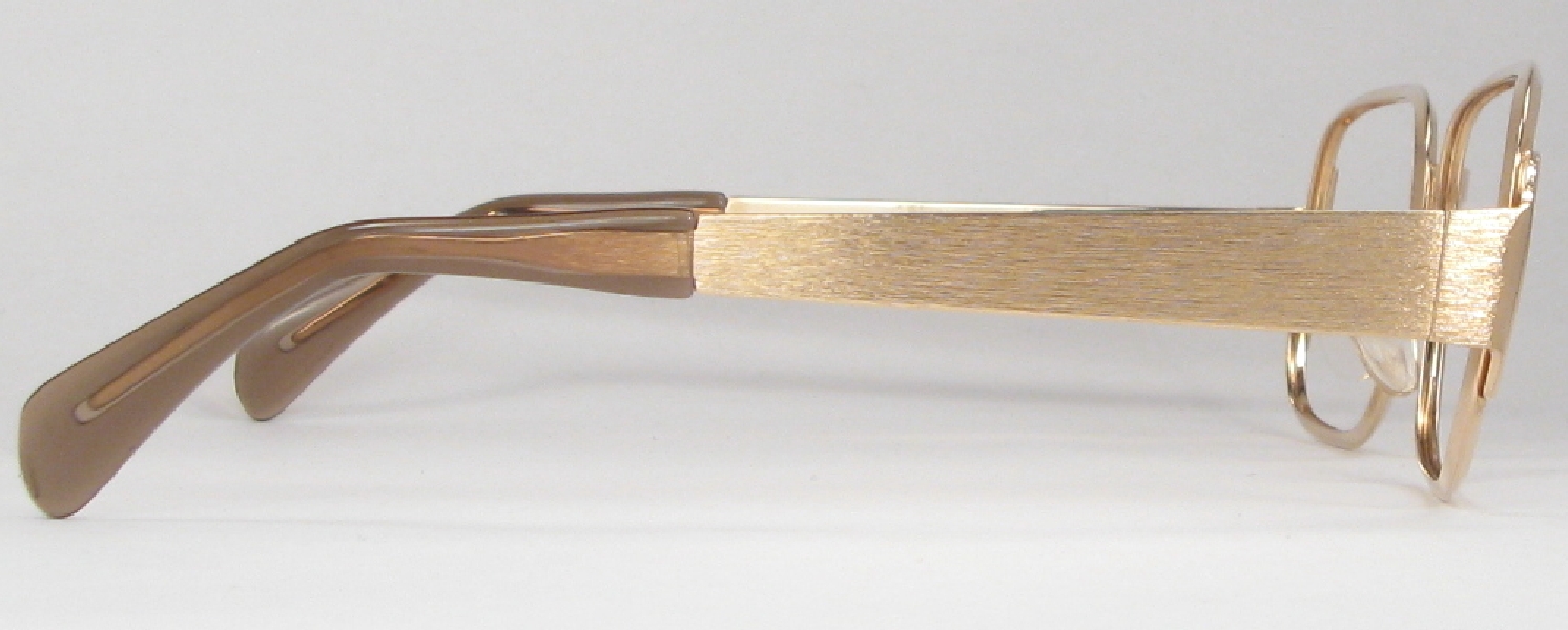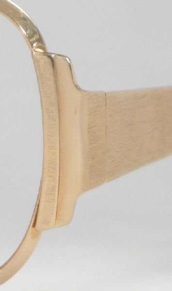 Here's a very 1970s frame by Optura, made in West Germany, likely in the later 1970s or maybe into the 1980s. It's gold-filled, a nice feature that should make for a longer-lasting finish. Shiny rims are combined with a heavily brushed finish on the bridge, hinges and temples for a very cool look. The temples are super-thick, very cool and the way the hinges wrap around to the front