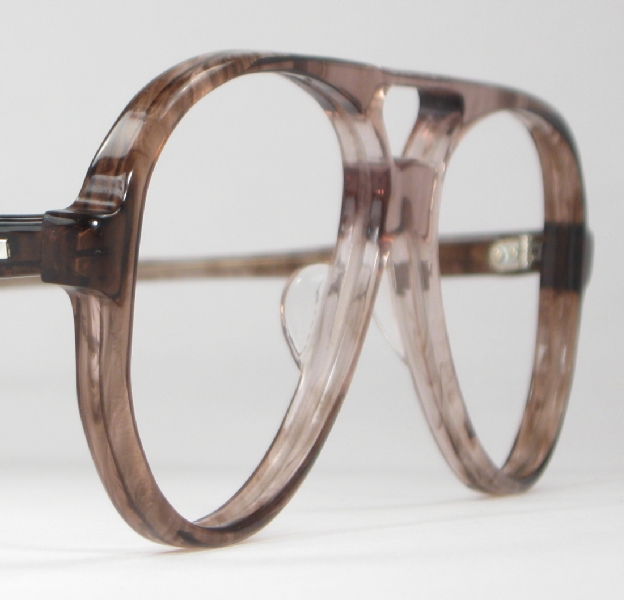 This big 1970s teardrop aviator is called the ''Wakefield'' and it's by Brentwood Optical Company. They called the color ''brown-tone'' and it fade from darker brown at the hinges to almost clear at the bridge, all in a